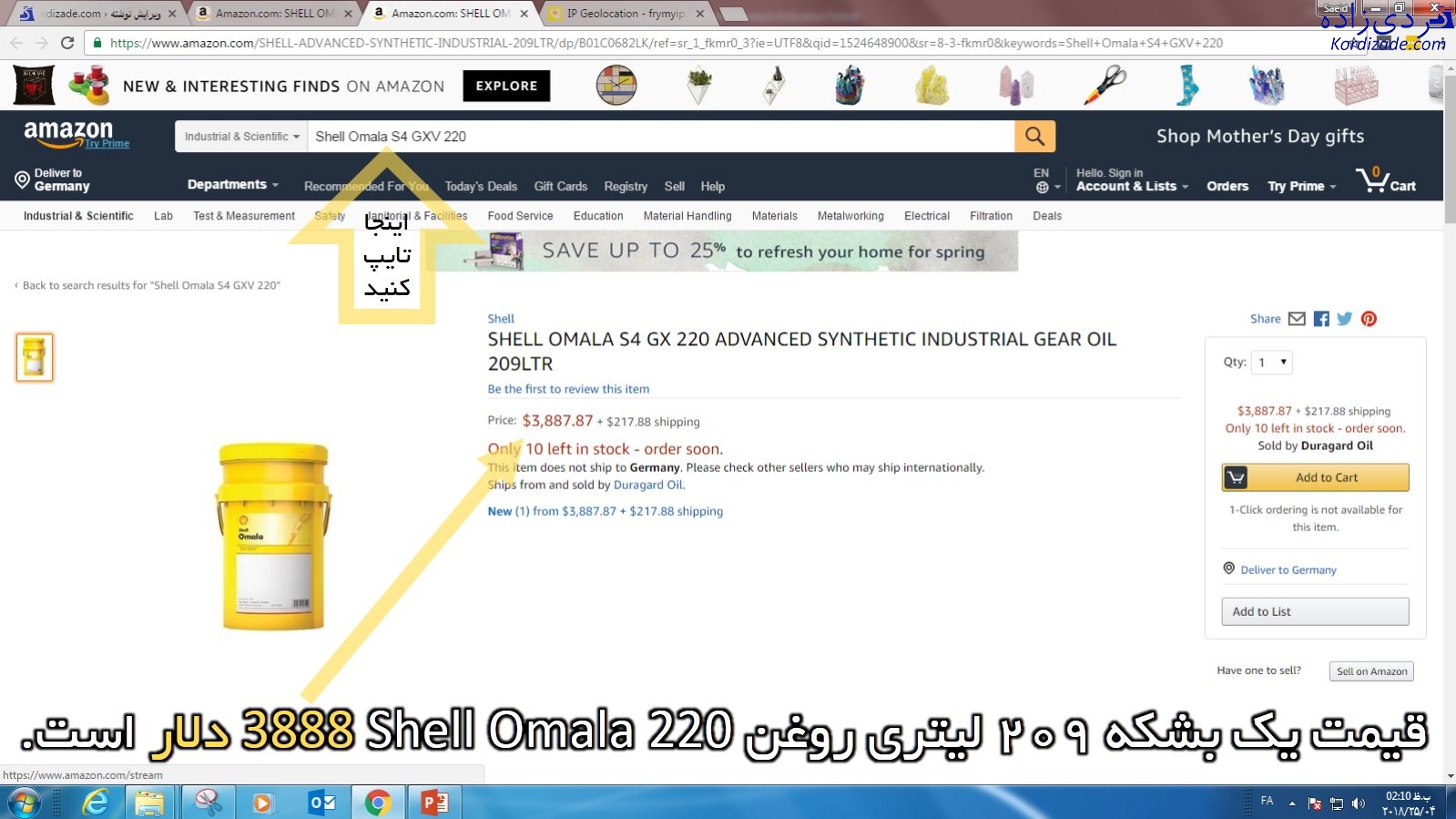 با توجه به قیمت پیشنهادی سایت آمازون که خوب میدانیم که هزینه های گمرک و حمل و نقل را شامل نمیشود، بنابراین هزینه خرید چهار بشکه روغن Shell Omala 220 در حدود 16 هزار دلار است.
