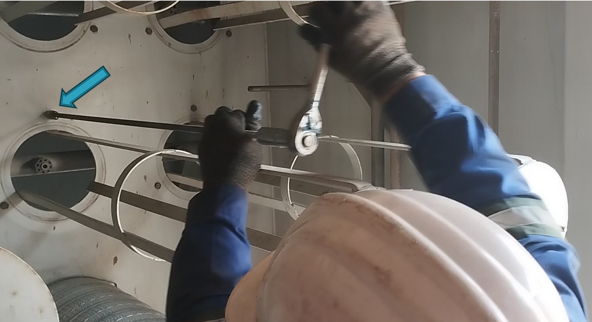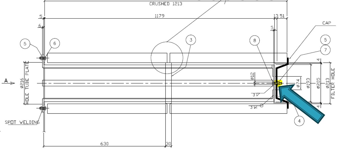 همانطور که در تصویر زیر مشاهده میکنید، با بستن مهره M10، گسکتهای فیلتر به یکدیگر و همچنین بدنه فلزی دیوار سایلنسر باکس یا کیلین روم (clean room) فشرده شده و فیلترها نسبت به یکدیگر و بدنه فلزی آببند میشوند. طبق مدرک سازنده این پیچ باید با گشتاور 15 N.m محکم گردد.
