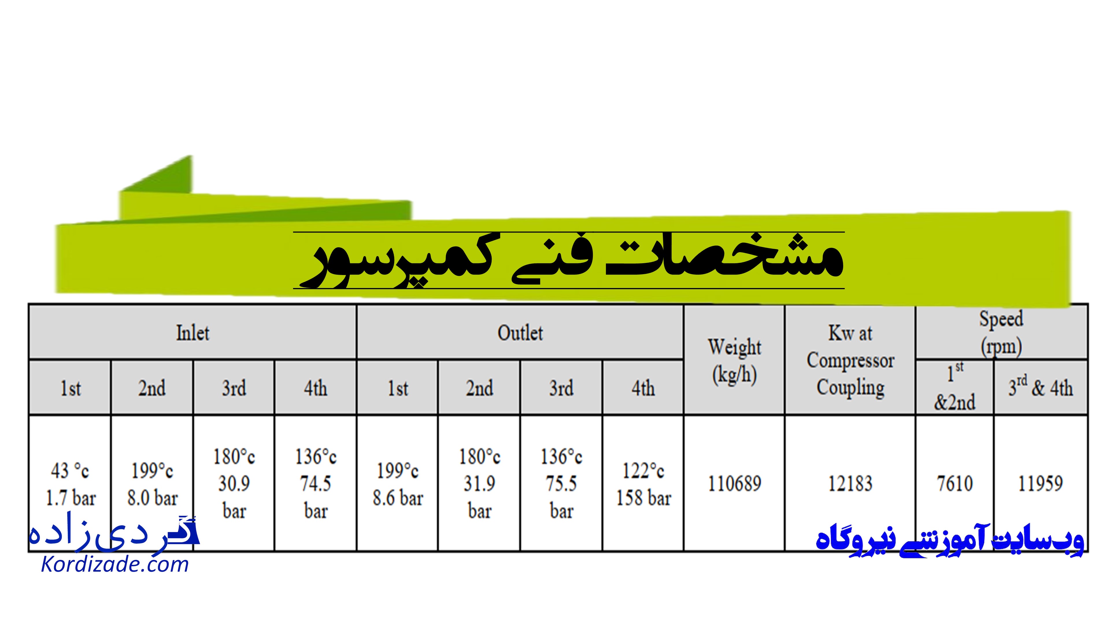 در جدول شمارۀ 1 مشخصات کمپرسور ملاحظه میگردد.