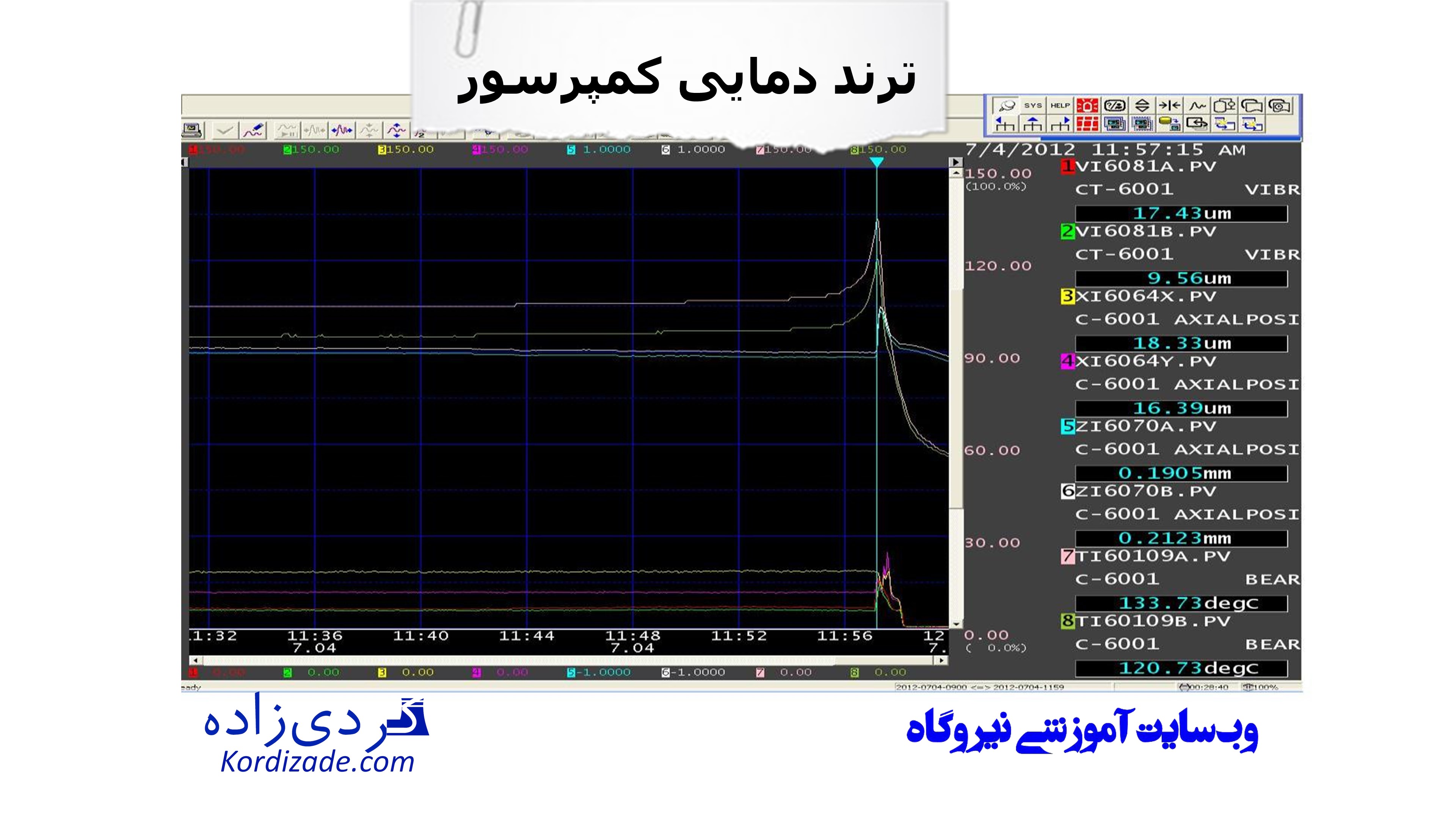 ابتدا مقدار دمای تراست بیرینگ کمپرسور HP (TI60100A&B) بهصورت نگرانکنندهای از 104 درجه به 115 درجه سانتیگراد افزایش یافت.