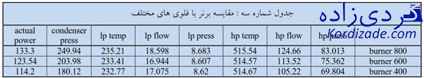 که به عنوان مثال میزان تاثیر فلوی برنرها در جدول شماره سه آورده شده است همچنان که مشاهده میگردد هر مقدار که از میزان برنرها کاسته شود مگاوات تصحیحشده نیز از مگاوات نامی فاصله خواهد گرفت.