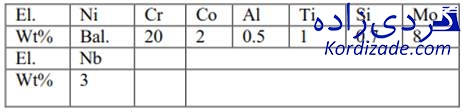 جدول ۱- ترکیب شیمیایی پره