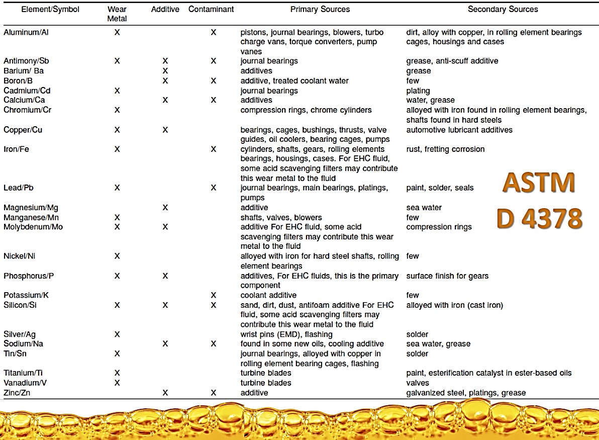 دراین تصاویر لیستی از عناصر موجود در روغن توربین به همراه منشا آنها آورده شده است.