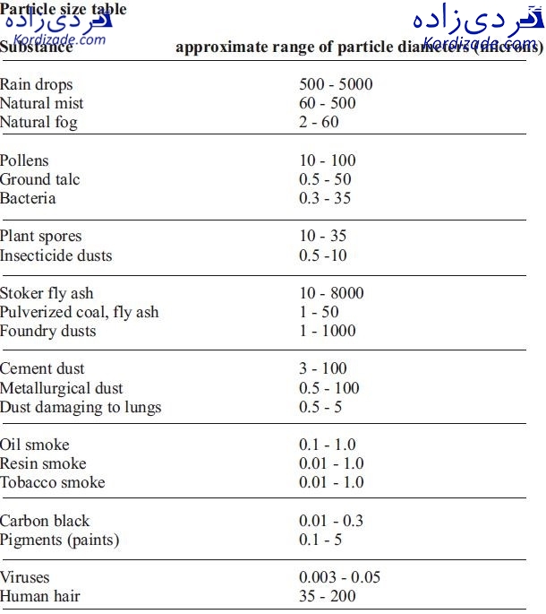 در جدول شماره (4) اندازه برخی از آلودگی ها و ذرات آورده شده است.