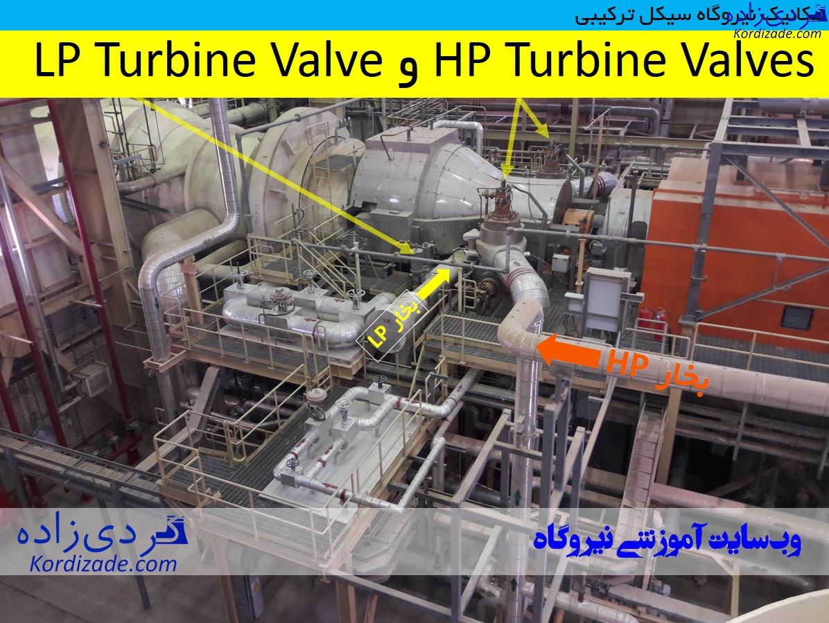 بخار HP تولید شده در بویلر HRSG از طریق ولو های توربین با فشار 90 بار و دمای 520 درجه سانتیگراد وارد توربین می شود.