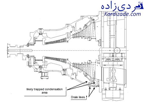 از آنجا که دو خط درین انتهایی توربین که به پوسته بیرونی (Outer Casing) توربین متصل هستند به هاتول و فلشباکس تخلیه میشوند (تصویر ۲)، بالا آمدن سطح آب در آنها مانع از تخلیه درین شده و نتیجتا آب کندانس در درون توربین باقی مانده است.