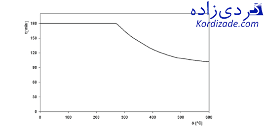 نمودار ۱: منحنی نفوذ هوا که زمان مجاز نفوذ هوا به توربین را بر اساس دمای متوسط روتور نشان میدهد.