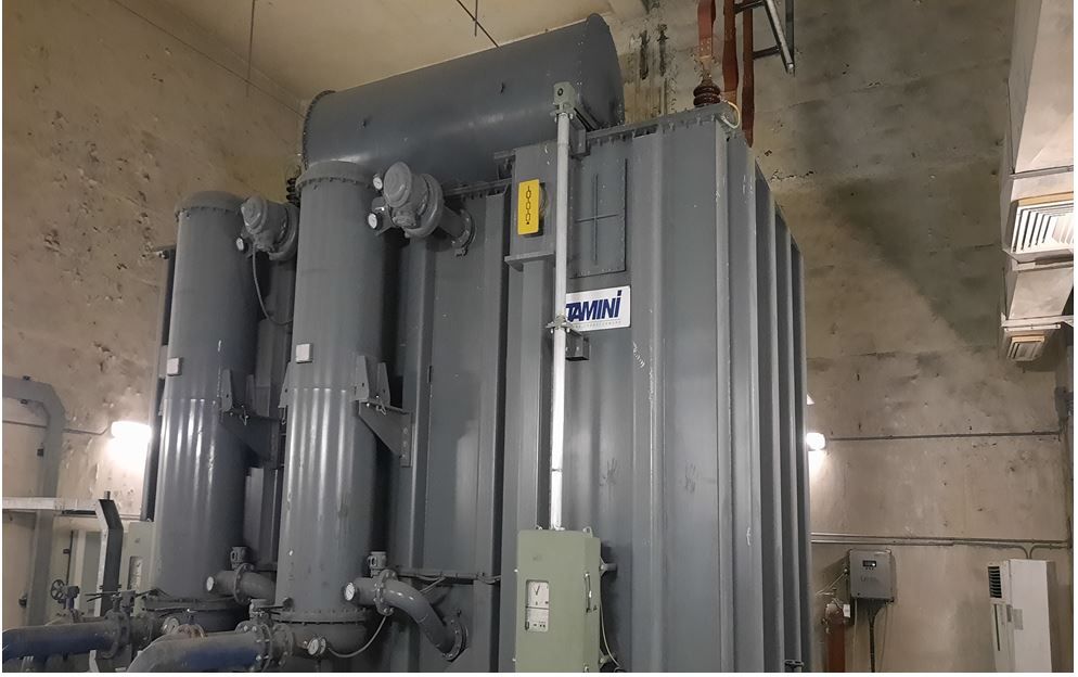 توليد شمش فولادي در شركت جهان فولاد بدين صورت است كه 95 درصد آهن اسفنجي يا قراضه آهن شارژ كوره شده و محصول نهایی در واحد ریخته گری به صورت بيلت با مقاطع 150*150 و 130*130 و يا 120*120 تولید می گردد. آهن اسفنجی تولید شده در کاخانه احیاء مستقیم این مجموعه از طریق نوار نقاله به مخازن ذخیره اسفنجی در کارخانه فولاد سازی جهت شارژ کوره انتقال داده می شوند و همچنین در بعضی مواقع آهن قراضه از سالن ذخیره قراضه از طریق سبد های قراضه به سالن فولاد سازی انتقال داده و با استفاده از جرثقیل سقفی به کوره قوس الکتریکی EAF شارژ می شود و در کوره با استفاده از جریان برق که از طریق یک دستگاه ترانسفورماتور قدرت را به سه عدد الکترود انتقال داده و قوس الکتریکی ایجاد شده توسط این الکترود ها آهن اسفنجی و یا قراضه را تبدیل به مذاب می کنند. مذاب پس از رسیدن به دمای مناسب در پایتل تخلیه و پاتیل جهت آلیاژ سازی با استفاده از جرثقیل سقفی به کوره پاتیلی LF انتقال داده می شود، در واحد کوره پاتیلی با استفاده از عناصر آلیاژی مذاب با کیفیت مناسب از نظر خواص شیمیایی مطابق با سفارش مشتری و پس از رسیدن به دمای مناسب آماده و جهت ارسال به واحد ریخته گری مداوم CCM در اختیار جرثقیل سقفی قرار می گیرد و پاتیل با استفاده از جرثقیل سقفی به واحد ریخته گری انتقال و بر روی برج گردان به منظور شروع فرایند ریخته گری قرار داده می شود، مذاب از طریق گیت خروجی کف پاتیل به تاندیش و از تاندیش به قالب ها وارد شده و ریخته گری شروع می گردد که در طول مسیر از اسپری آب به منظور انجماد شمش استفاده می شود، شمش های تولیدی در طول مسیر با استفاده از برش به سایز های قابل فروش تبدیل می شوند و در نهایت به بستر خنک کاری انتقال یافته و پس از خنک شدن و انجام کنترل کیفی آماده انبارش و بارگیری می شوند. ترانسفورماتور کوره قوس الکتریکی در فرایند کارخانه فولاد سازی، به عنوان منبع تغذیه EAF استفاده می شود. ترانسفورماتور EAF دارای ظرفیت زیاد، ساختار پیچیده و الزامات فنی بالا است. در این ترانسفورماتور ولتاژ ثانویه کم است، به طور کلی تا حدود 700 ولت، که می تواند در یک محدوده بزرگ تنظیم شود. جریان ثانویه اغلب نزدیک به 83000 آمپر می رسد. شکل شماره 1 محل قرار گیری این تجهیز در اتاق ترانس و جدول شماره 1 مشخصات آن را بیان می کند.]1[