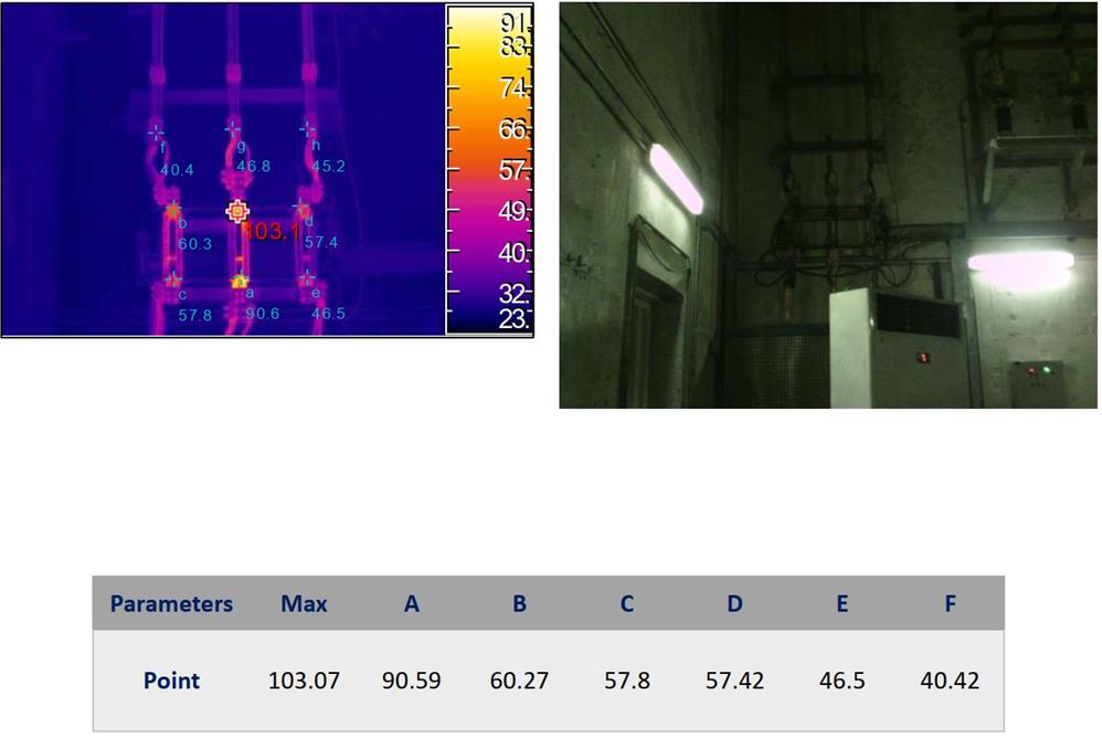 همانگونه که در تصویر شماره 4 مشخص است اختلاف دما بین فاز های ورودی به ترانسفورماتور کوره EAF وجود دارد که بیانگر این است در تیغه های سکسیونر عیوبی مانند محکم نبودن پیچ های نگه دارنده تیغه ها(لقی)، وجود آلودگی های محیطی در محل اتصال می باشد.]2[