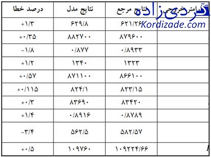 جدول ۲- نتایج نقطه کار ۲