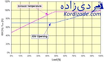 تغییرات دبی با میزان بازشدگی از صفر تا صد درصد VIGV نیز در نمودار شکل (۱) بر حسب تغییر بار واحد آمده است.