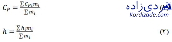 در روابط فوق mi درصد جرمی اجزا تشکیلدهنده گاز میباشد.