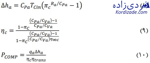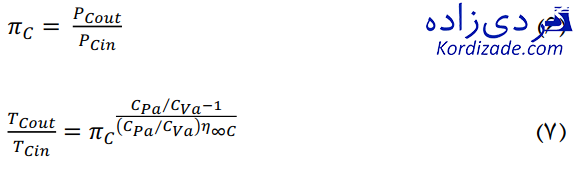 با مشخص شدن نسبت فشار در کمپرسور دما و فشار خروجی کمپرسور بصورت زیر قابل محاسبه خواهد بود: