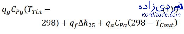 بالانس انرژی در فرایند احتراق بصورت شکل (۲) نمایش داده میشود، دمای مرجع C°۲۵ انتخاب شده است.