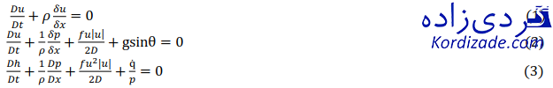 که در آنها ρ چگالی سیال، p فشار سیال، h آنتالپی (بخار) مخصوص، f ضریب اصطکاک،